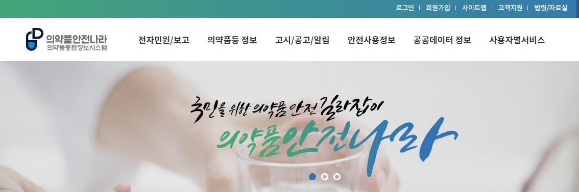 식약처에서 운영하는 의약품안전나라 홈페이지에 접속을 합니다.