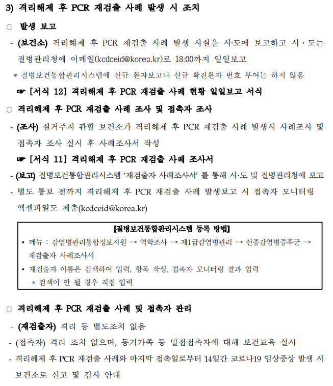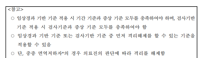 이말은 격리해제시 임상경과는 충족했으나 검사기반은 충족을 못해도