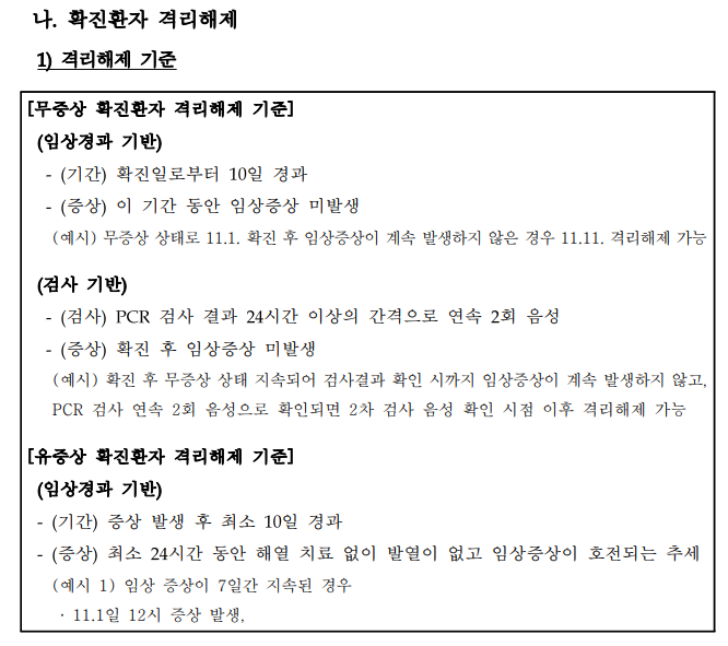 코로나19 양성이어도 격리후 일정기간지나면 퇴소(원)하는거 아시나요?