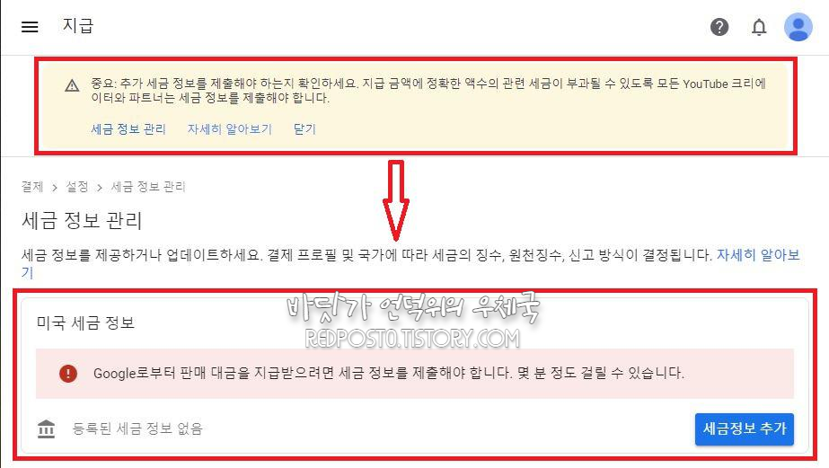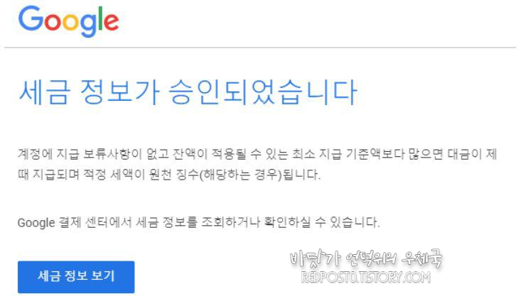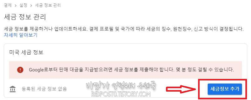 구글에서 판매대금을 지급받으려면 필수로 세금정보를 제출해야 합니다.