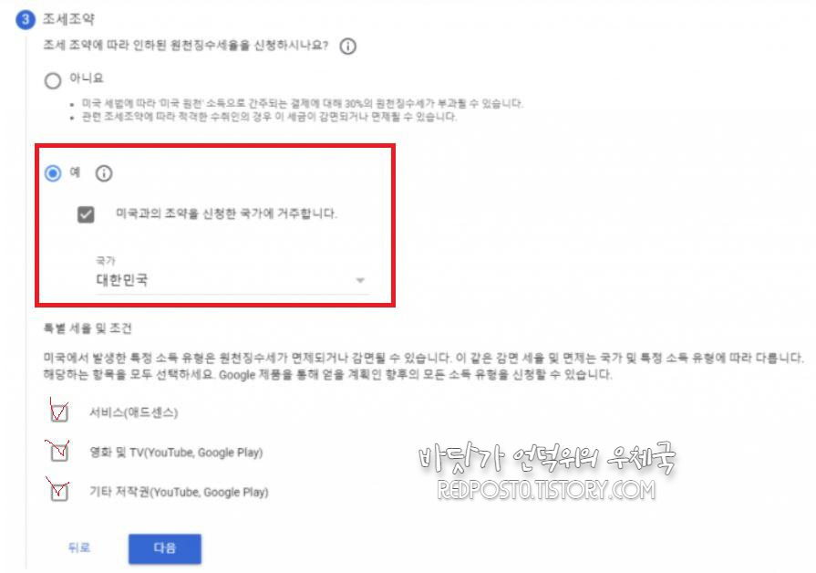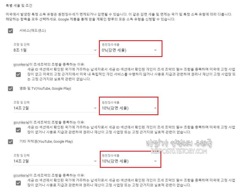 특별세율 및 조건은 애드센스만 하시면 서비스(애드센스)만 선택하시고