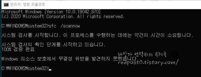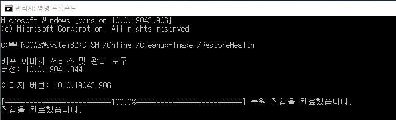 윈도우 시스템 이미지 복구 명령어 인데...문제가 있다면 복구 문구가 뜹니다.