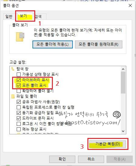 다시 "라이브러리 표시 / 모든 폴더 표시" 를 선택하고 적용을 해줍니다.