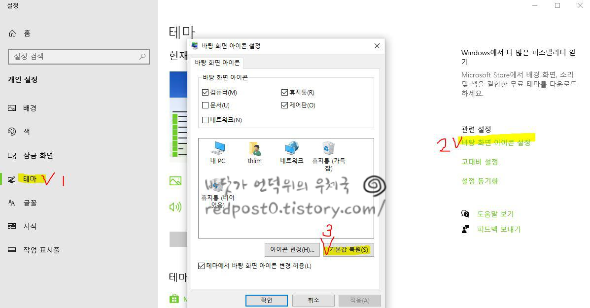 --> 화면 오른쪽에서 [바탕화면 아이콘 설정] 클릭
