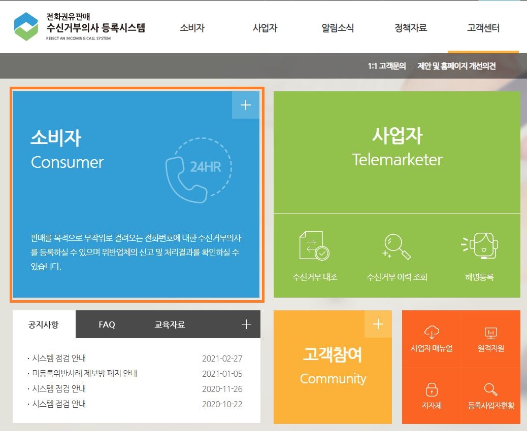 두낫콜 (Do Not Call) 전화권유판매 수신거부의사 등록시스템