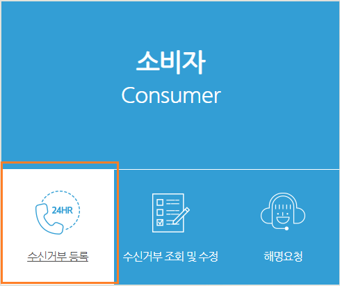 소비자를 선택하면 [수신거부 등록]을 선택해줍니다.