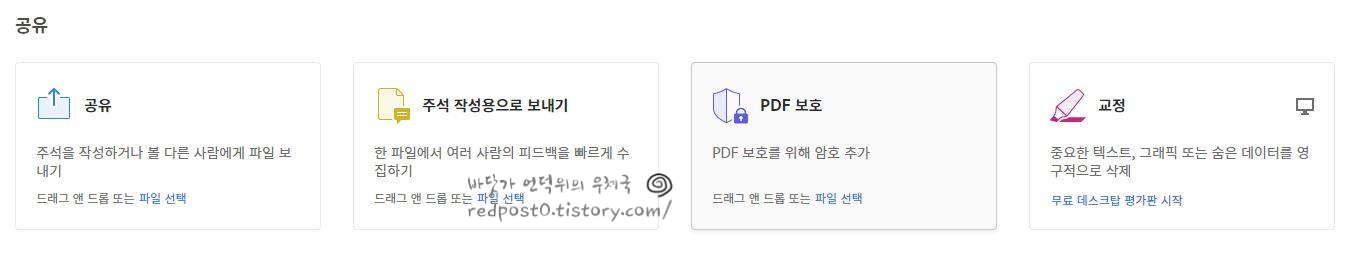 마지막으로 공유탭에서는 PDF파일에 암호를 걸어주는 PDF보호를 많이 사용하실겁니다.