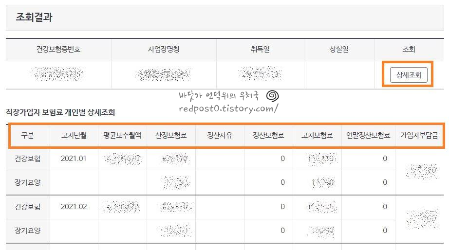 5. 해당년도의 직장가입자 보험료 상세내역과 평균보수월액 확인이 가능합니다.