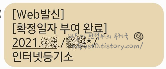 처리가 완료되면 인터넷 등기소에서 문자로 알려줍니다.