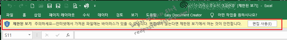 인터넷에서 다운로드 받은 파일이나 NAS에 연결된 파일을 엑셀에서 실행하면