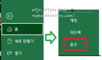 1. 메뉴 - 파일 --> 하단 옵션을 선택합니다.