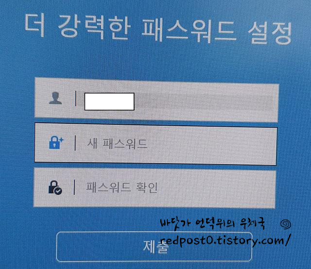 그러면 패스워드를 재설정하라는 창이 나오고 재설정하면 이후 정상적으로 사용이 가능합니다.