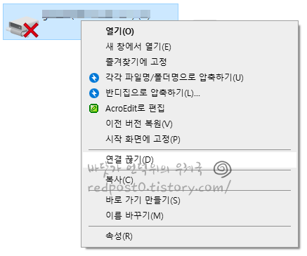 발생할 수 있다고 하며, 이런 경우 탐색기상에서 연결끊기가 아닌 CMD를 사용하여