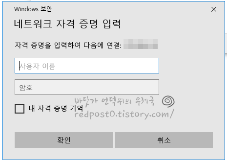 다시 PC 재부팅을 해도 네트워크 자격증명 입력란이 잘 나오네요... 해결!!