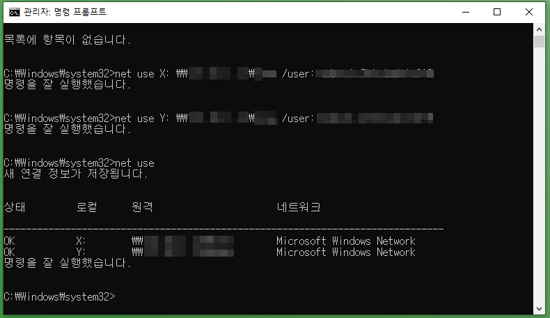 3. CMD를 이용한 기존 네트워크 드라이브 연결끊기 및 새로 등록