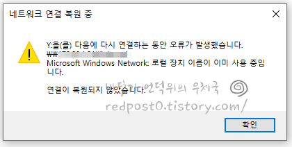 이는 근본적으로 윈도우 부팅 과정에서 네트워크 접속이 완료되기 전에 네트워크 드라이브 접속을 시도하고