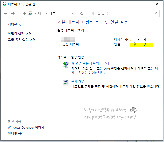 이번에는 네트워크의 이더넷 설정에서 보면