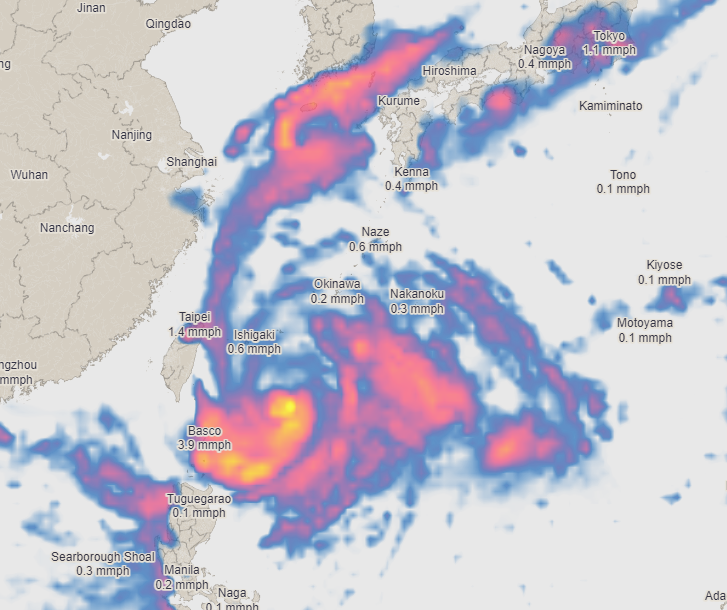 추가로 태풍이 오기전에 남부에 형성된 강력한 비구름대로 인해