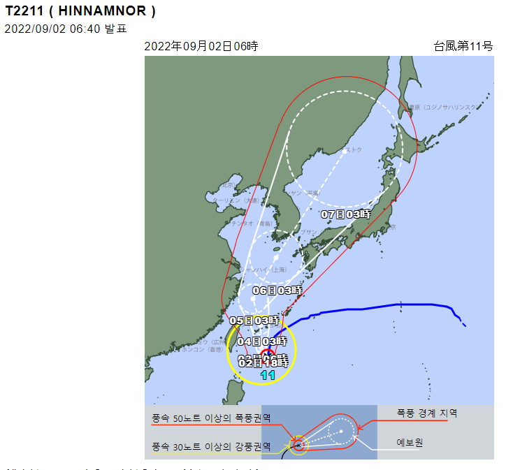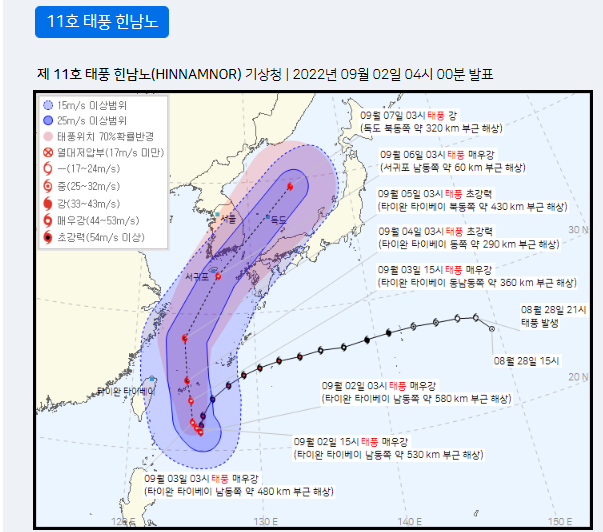 2022.08.31 - [잘먹고 잘살자/생활] - 2022년 제11호 태풍 힌남노 08.31 04:00 이동경로