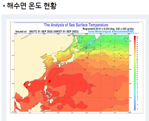 현재 힌남노는 타이완 남동쪽에서 정체된 상태로 몸집을 불리고 있는 상태에서