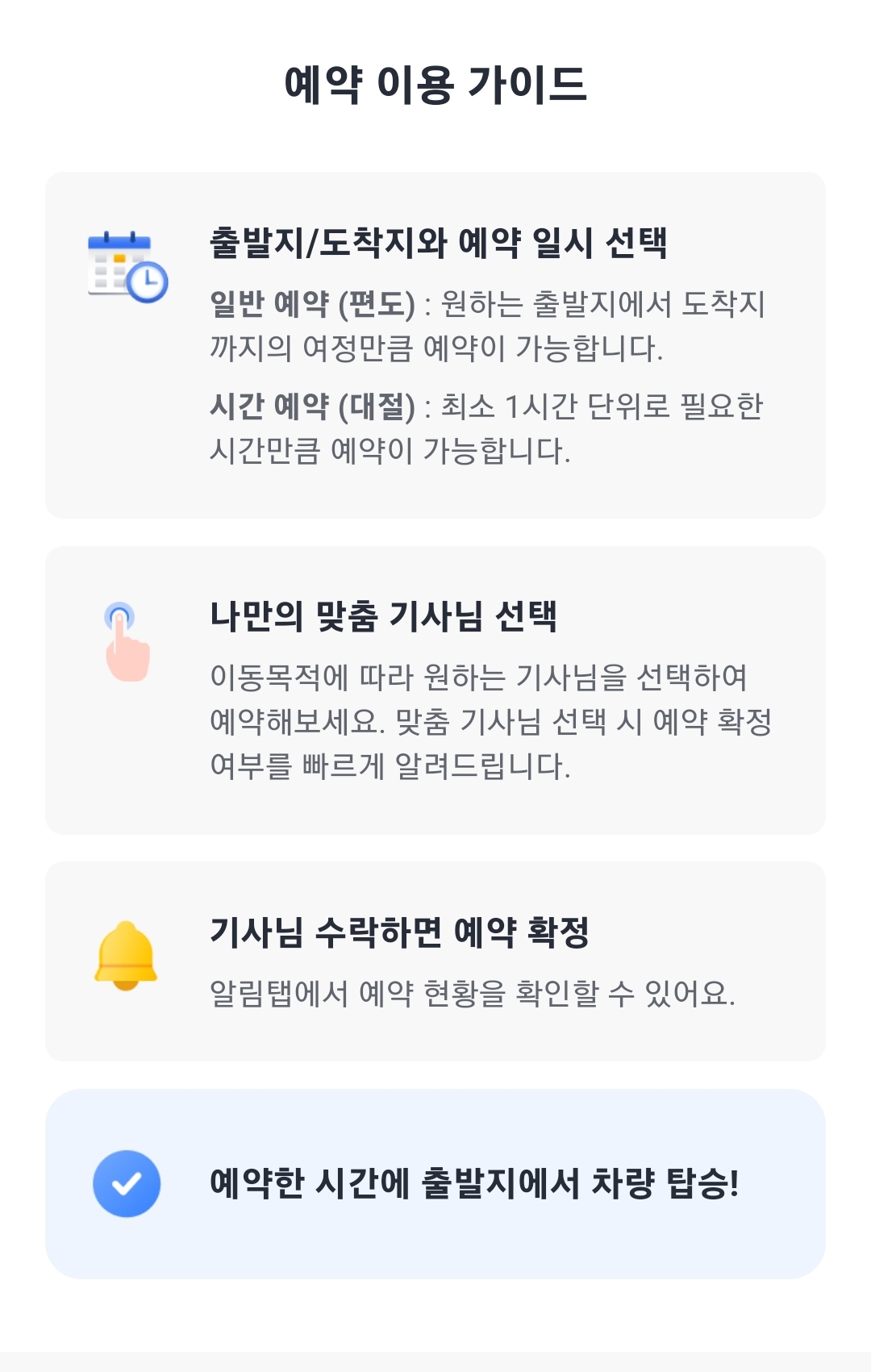 미리 시간을 정해놓고 택시를 부르는 경우는 편하겠지만