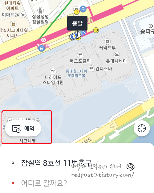 도착지 설정화면에서 예약을 누르면