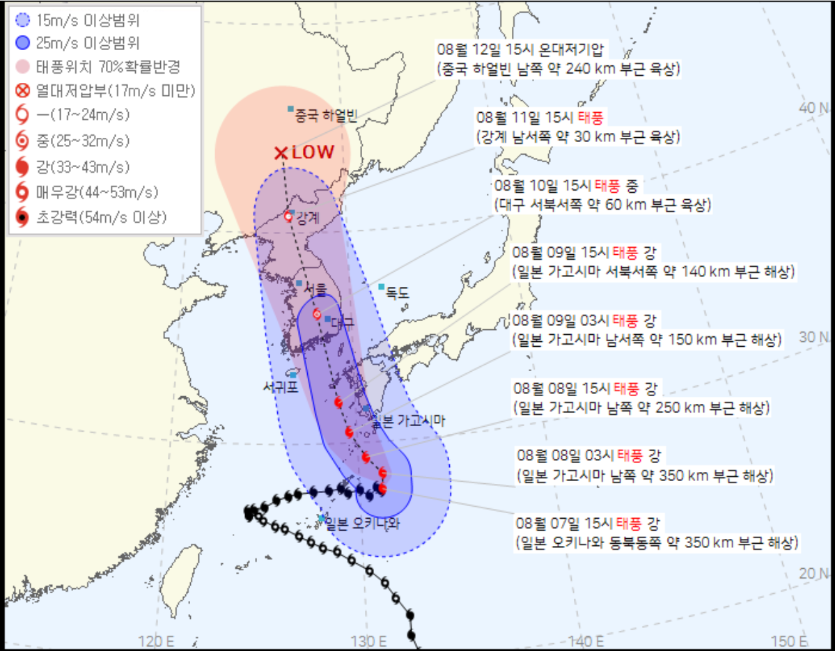 | 기상청 예상경로(08.07 16시 정보) |