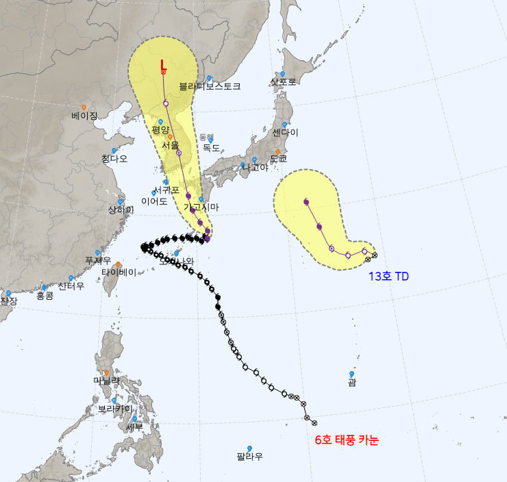 2023.08.07 - [잘먹고 잘살자/생활] - 2023년 제 6호 태풍 카눈 예상경로 (8.7 04시)