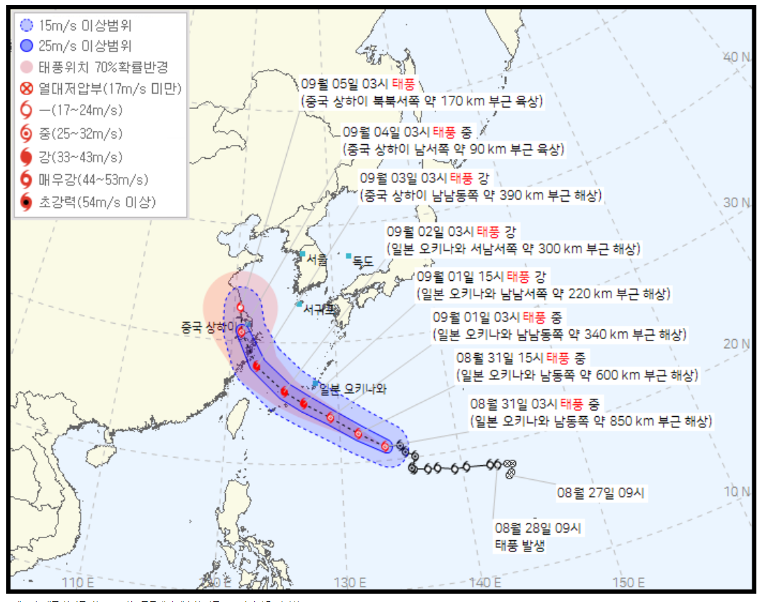 태풍의 영향권이 가시화 되는 3~4일 경에는 9월 초의 날씨가 어떻게 될지 일정이 있으시 분들께서는 지켜보셔야 할거 같습니다.