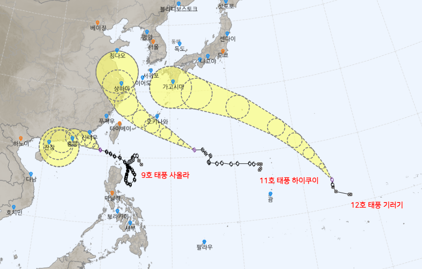 비슷한 시기에 4개의 태풍이 오는 경우는 흔치않은데