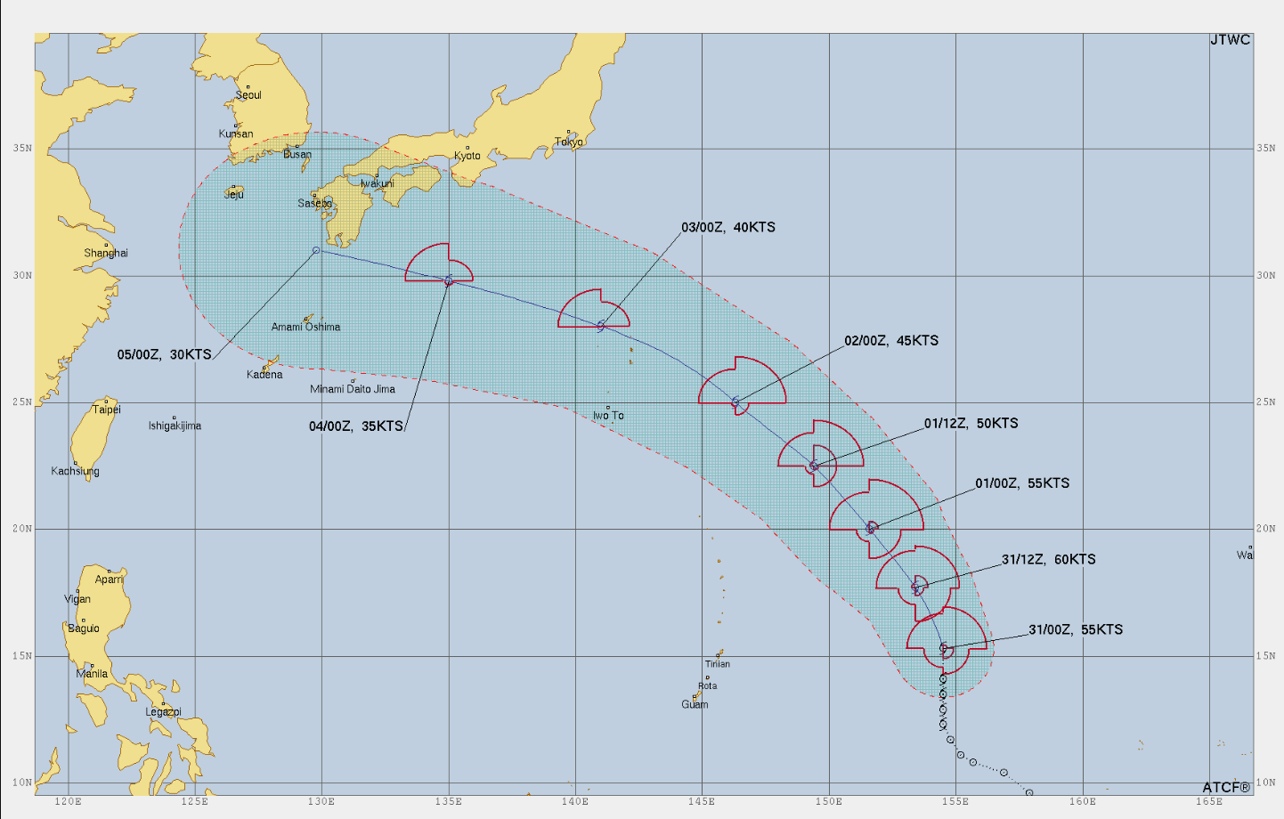 미국합동태풍경보센터의 경로도 동일하며