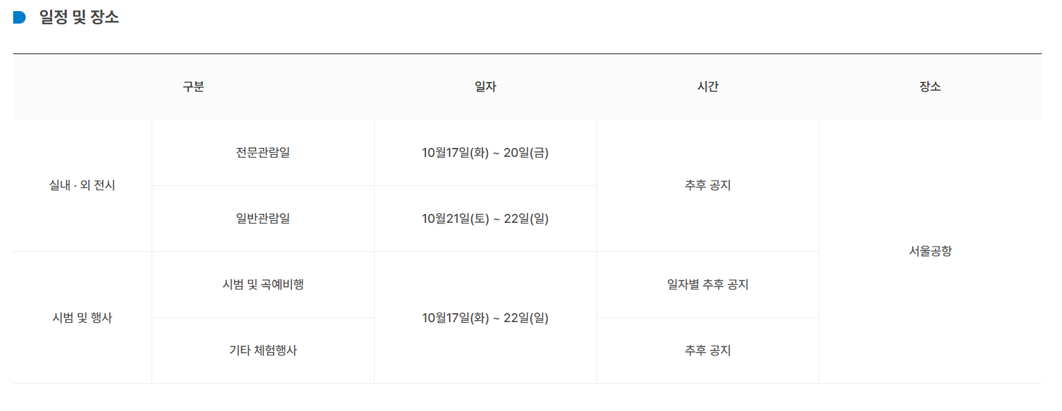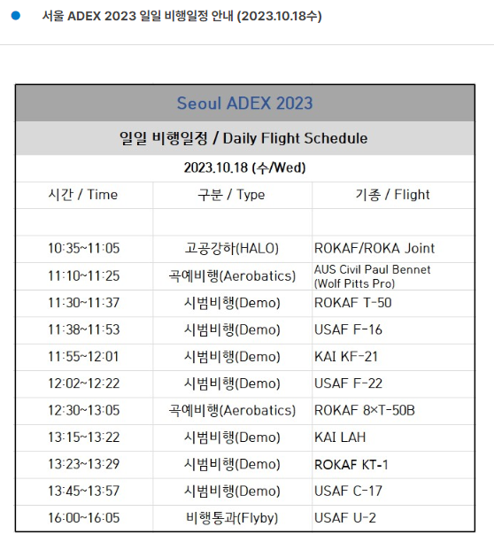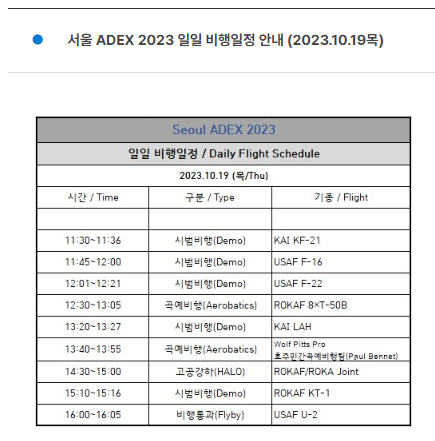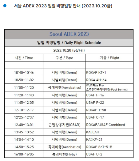 에어쇼에 대한 상세 일정은 아직도 나오지 않았네요(10.05 기준)