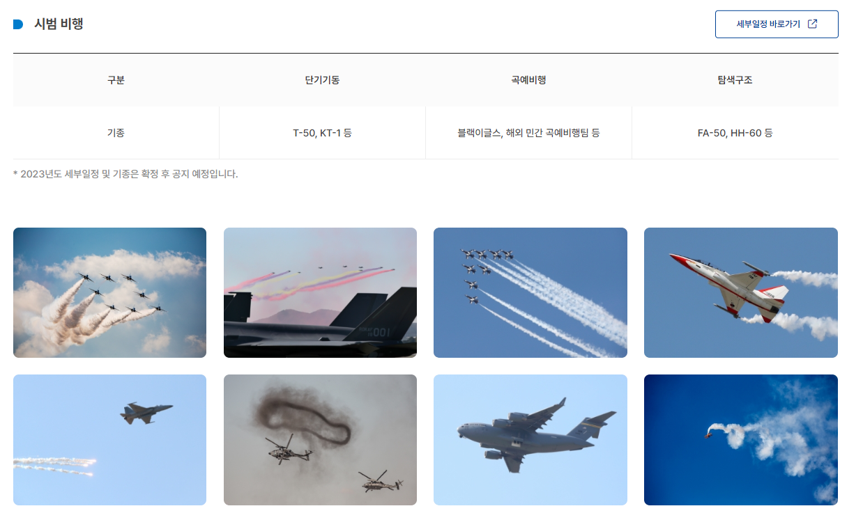 기종별로 시범비행하는 시간이 정해져 있으니, 추후 일정이 나오면 확인해시고