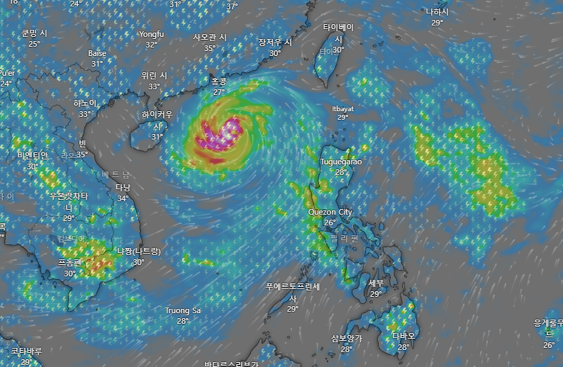 필리핀 북부를 지나 5일 현재 홍콩 남쪽 먼바다에 위치해 있으며,