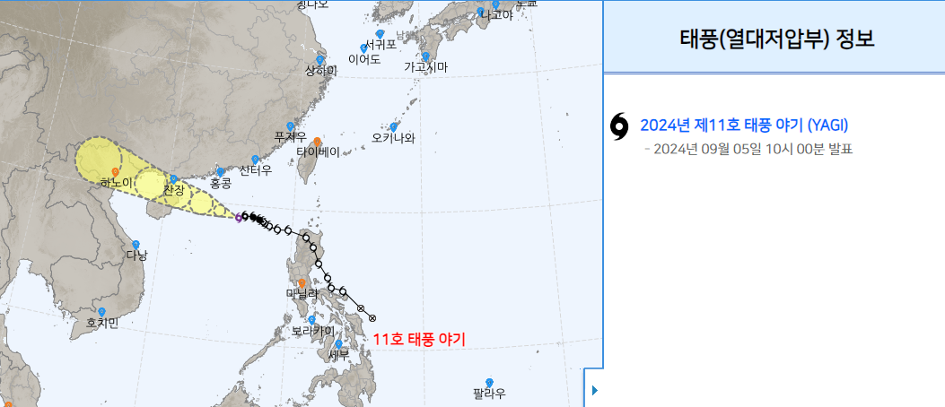 오늘은 11호 태풍 야기(yagi)에 대한 소식 입니다.