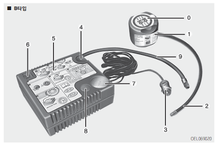 시동켜고, 전원연결하고, 타이어에 공기노즐 연결