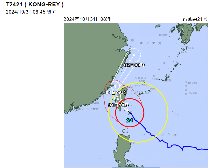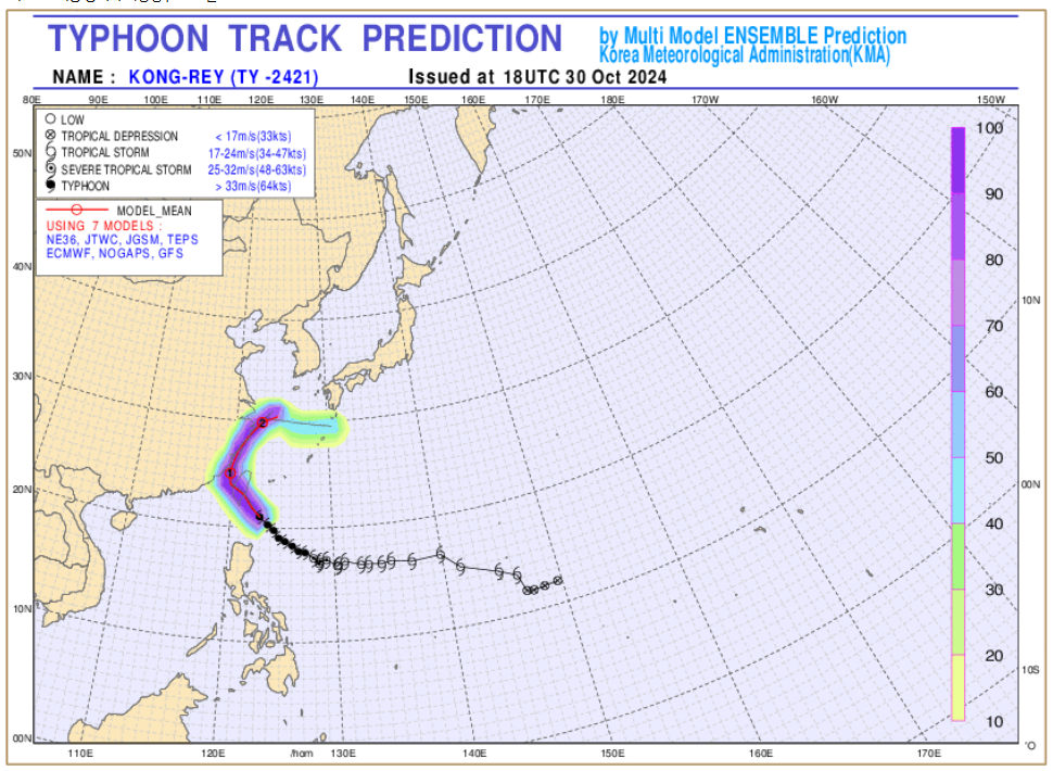 2024.10.29 - [잘먹고 잘살자/생활] - 2024.10.29 제 21호 콩레이 예상 이동경로, 11.1~2일 남부 비소식
