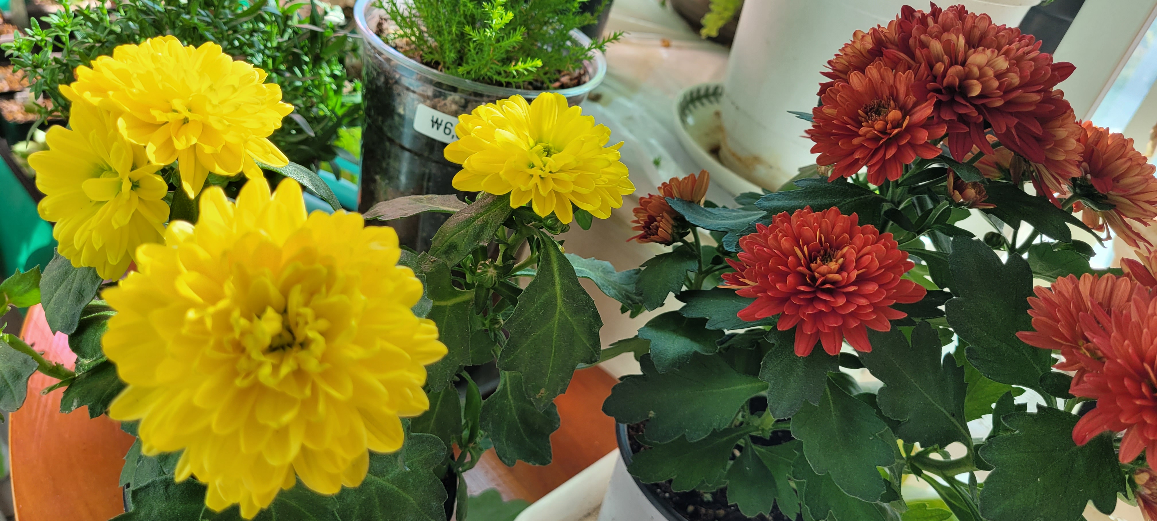 국화 화분 2개를 들여놓았습니다