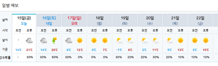 11.15 날씨 및 주말 날씨 소식