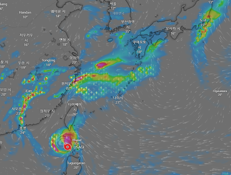 25호 태풍 우사기는 현재 대만 남쪽 해상에 위치해 있으며