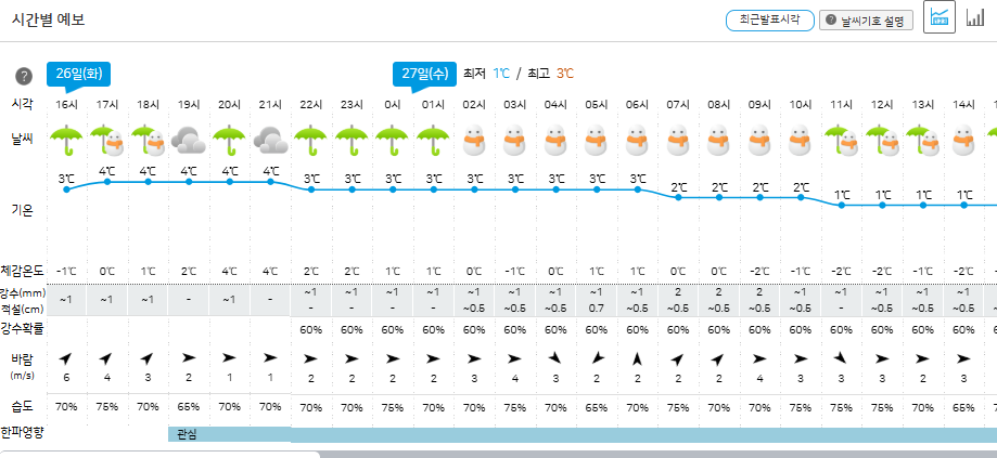 문제는 내일 새벽부터 눈소식이 있습니다. 28일 오전까지 예상이 되어 있네요