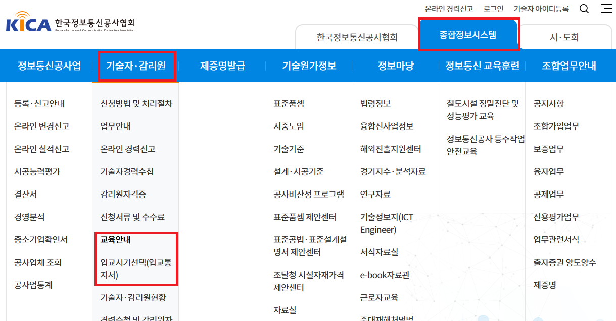 우선 한국정보통신공사협회 사이트에 접속하여 로그인 합니다.
