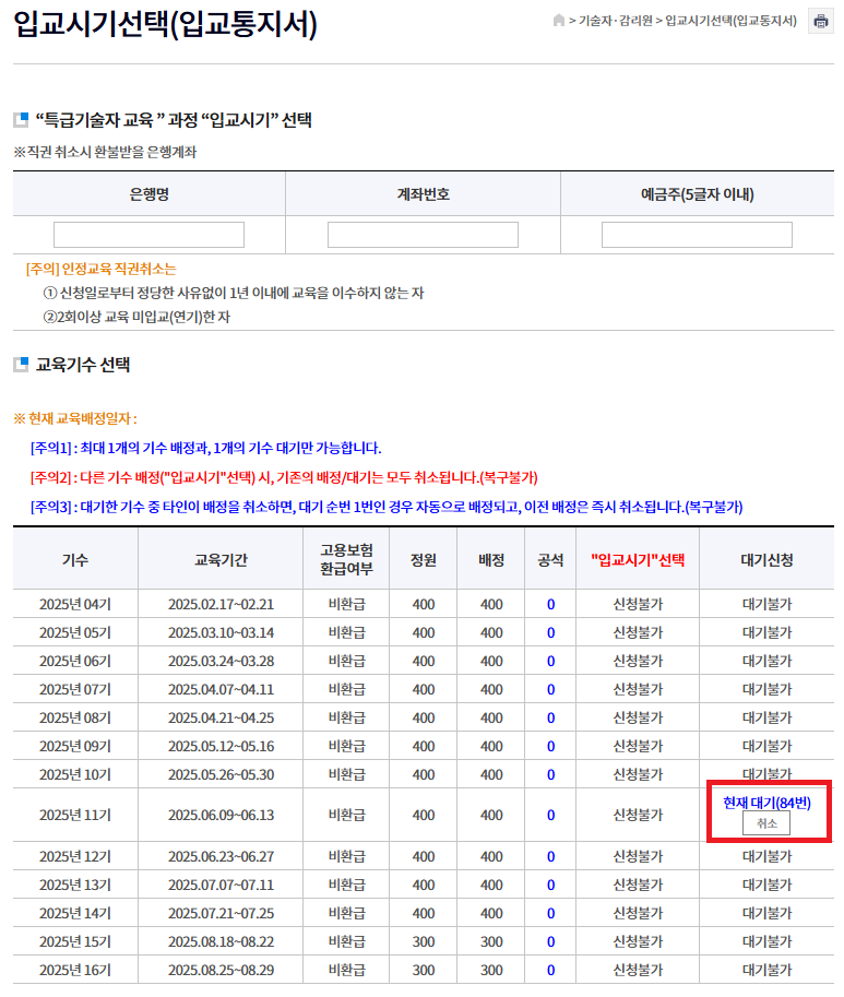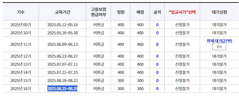25년 2월 현재 8월 과정까지 공지가 되어 있고요