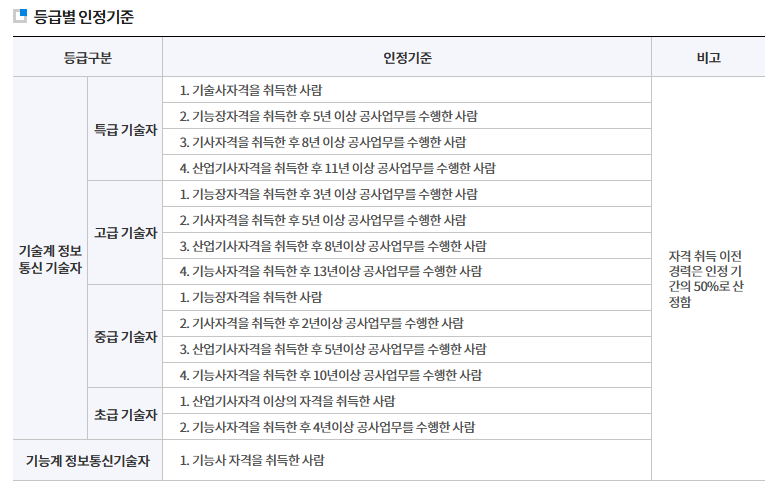 정보통신기술자 특급 자격 요건