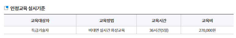 다만, 특급 기준 요건이 완화 된 만큼, 비대면 실시간 화상교육 5일을 받아야 하며, 교육비도 27만원이 청구 됩니다.