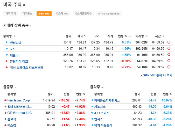 | 다우존스 (DIA) | 421.42 USD | -2.43 | -0.57% |