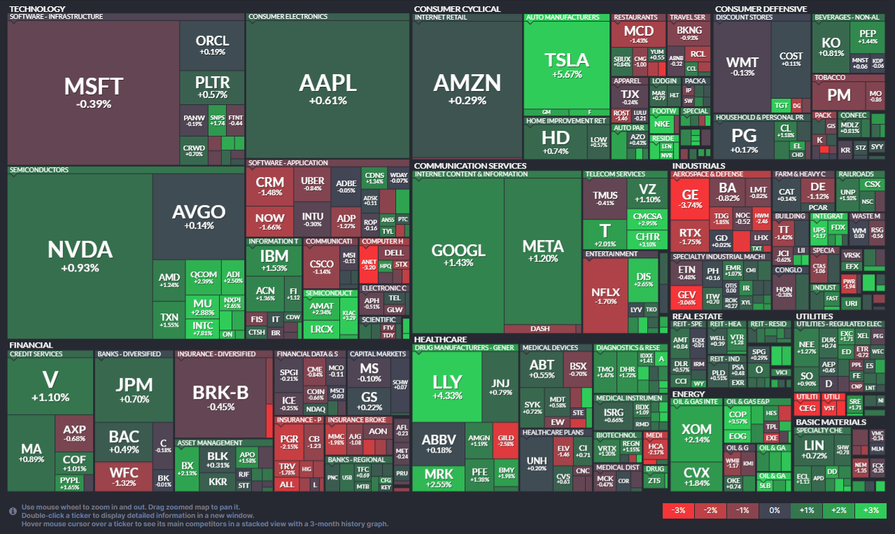 🎯 **테슬라(TSLA)**는 +5.6% 급등하며 시장 상승을 주도했습니다