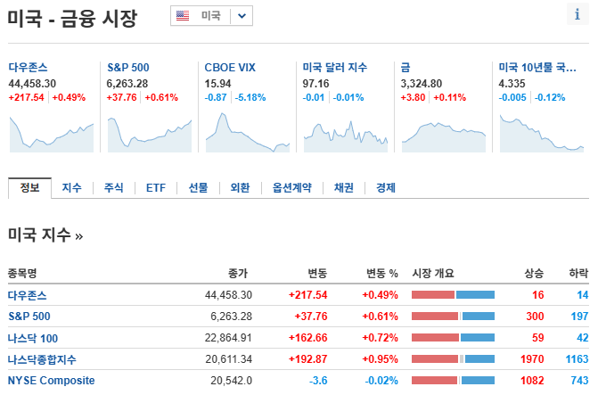 다우존스 산업평균: +0.5% ↑ (44,458.30)