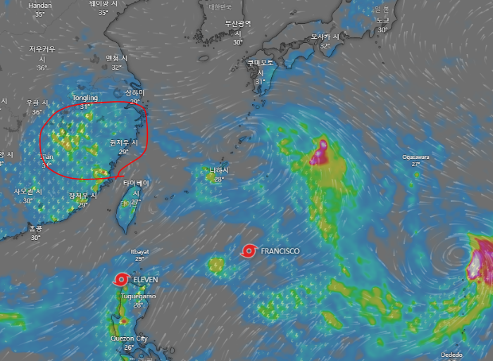 문제는 7호 태풍이 열대저압부로 약화되면서 중국대륙에서 소멸했으면 좋을텐데