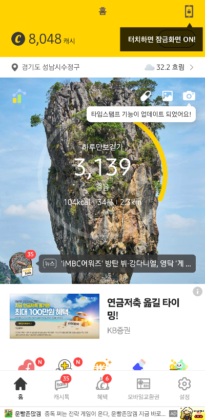 - 수동 적립(적립 시 광고 있음), 하루 4회 타임 포인트 추가 가능